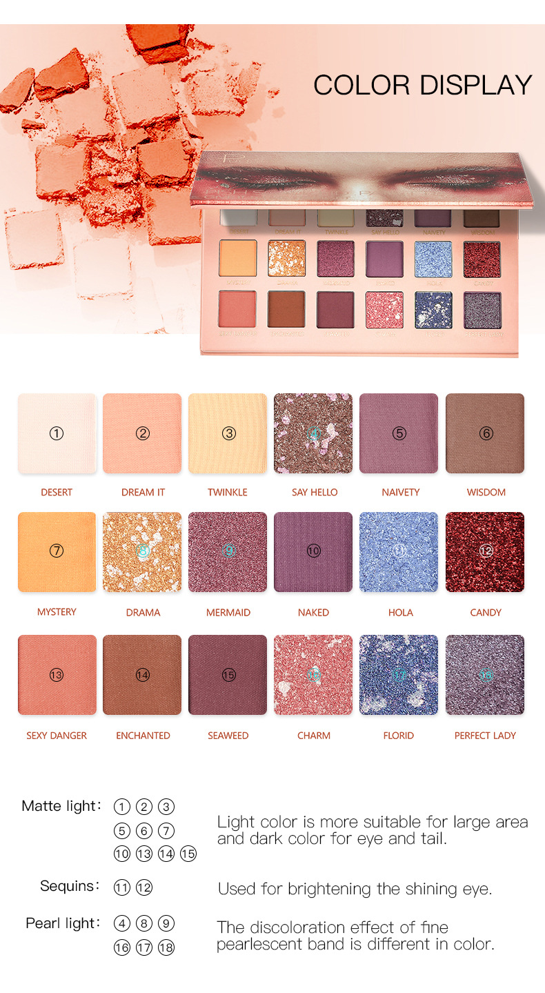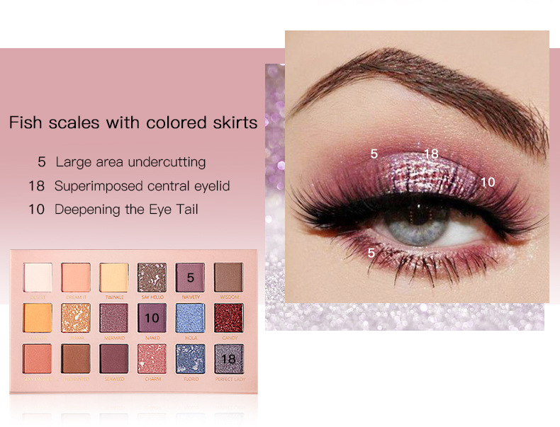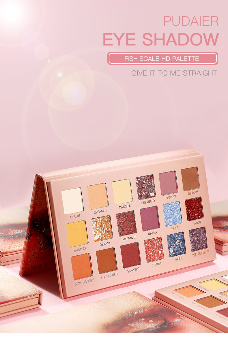 Pudaier fish scale 18 color eye shadow plate European American style matte pearlescent shimmer earth color eye shadow plate