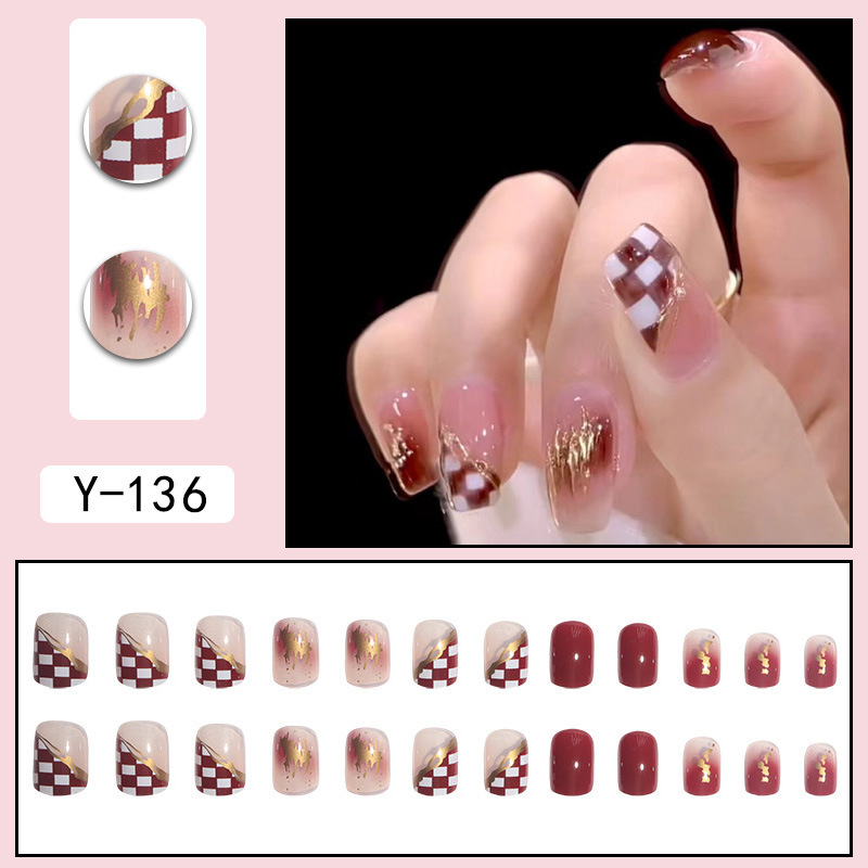 Short style Instagram style European and American fake nails wearing nails nail enhancement products foreign trade nail stickers and nail patches