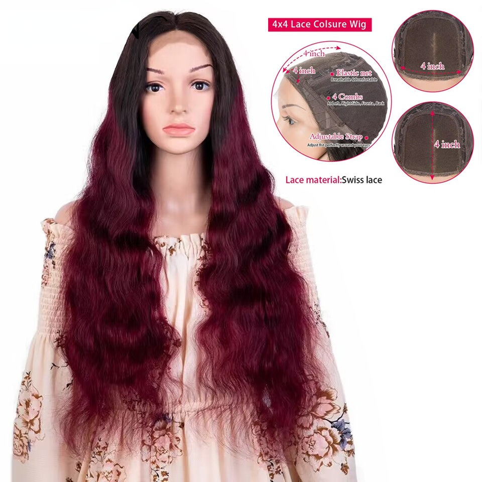 Burgundy wigs, 4*4 lace, full real hair, big wavy long curls, Human hair wigs