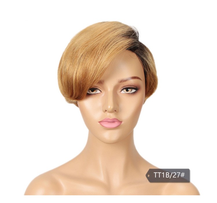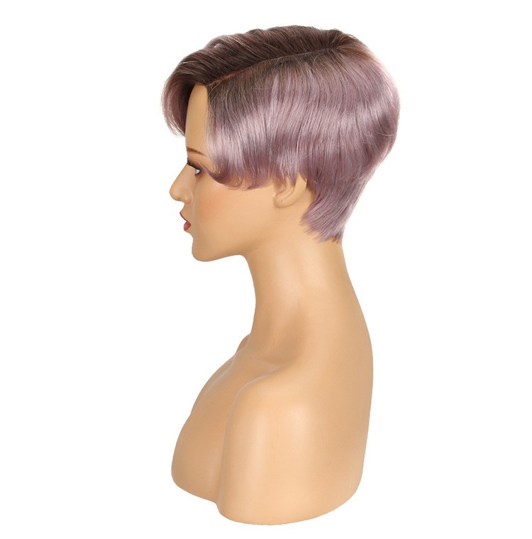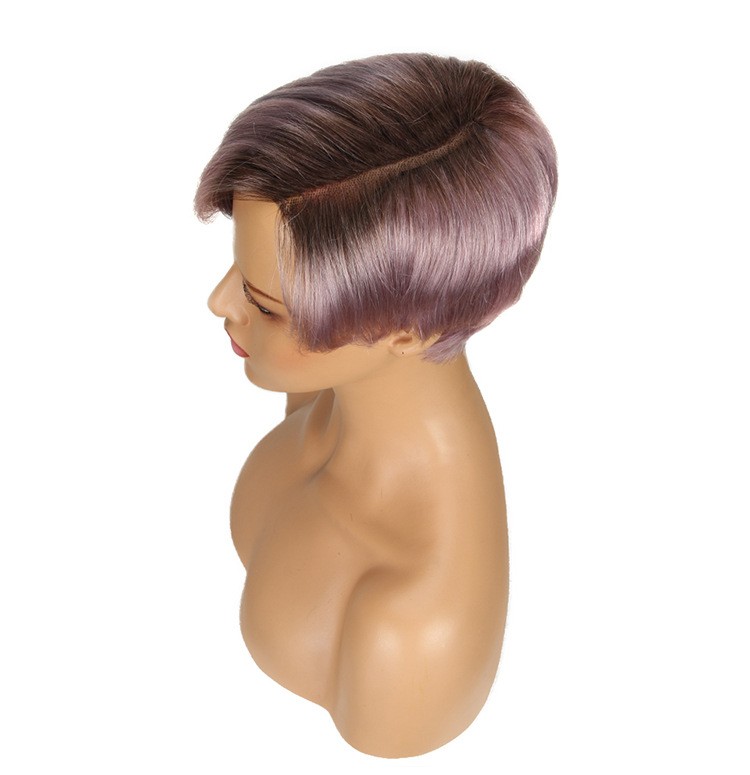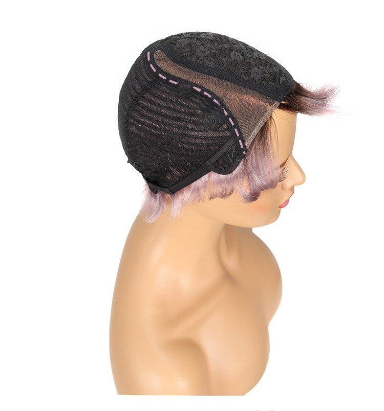 Cropped hand-woven hair quilted lace wig Colorful life-size hair hair head cover