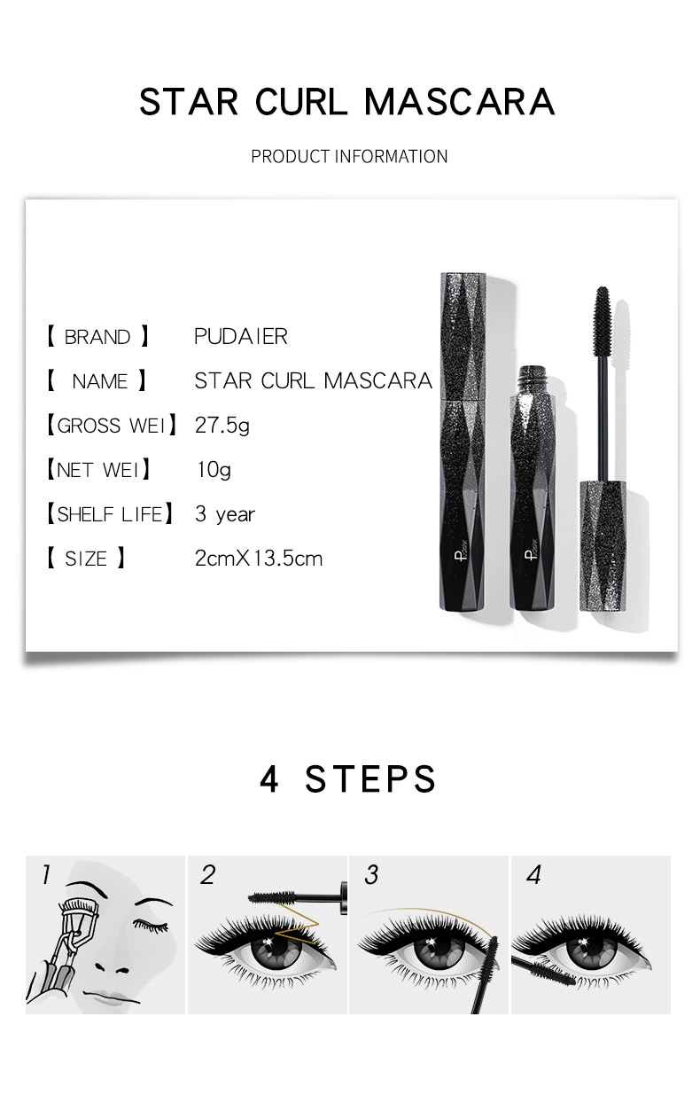 Pudaier Star 4d eye black, slim, fast drying, thick black, curly, non smudging, non fading, color makeup