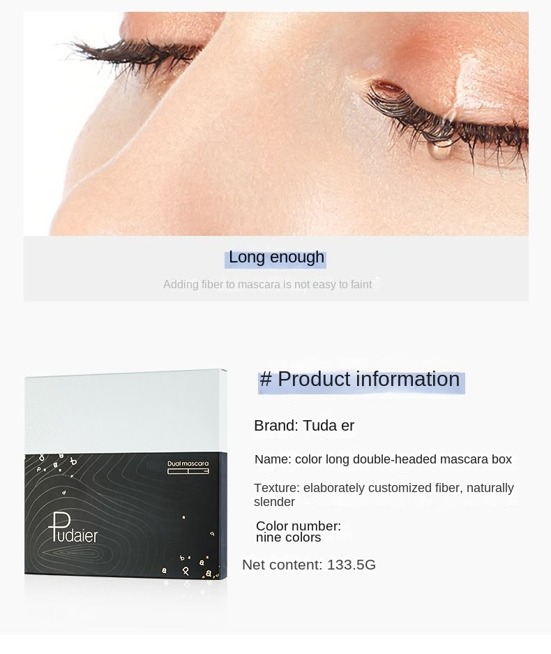 Pudaier4D color eye black, long, curly, thick, waterproof, and non smudging, 9 eye black