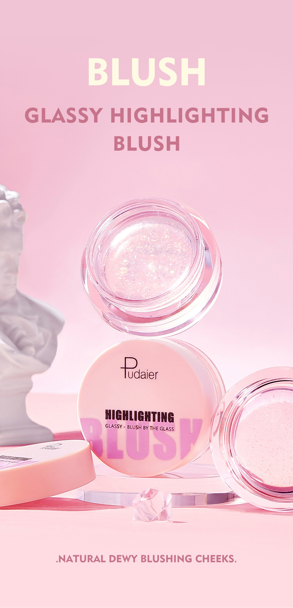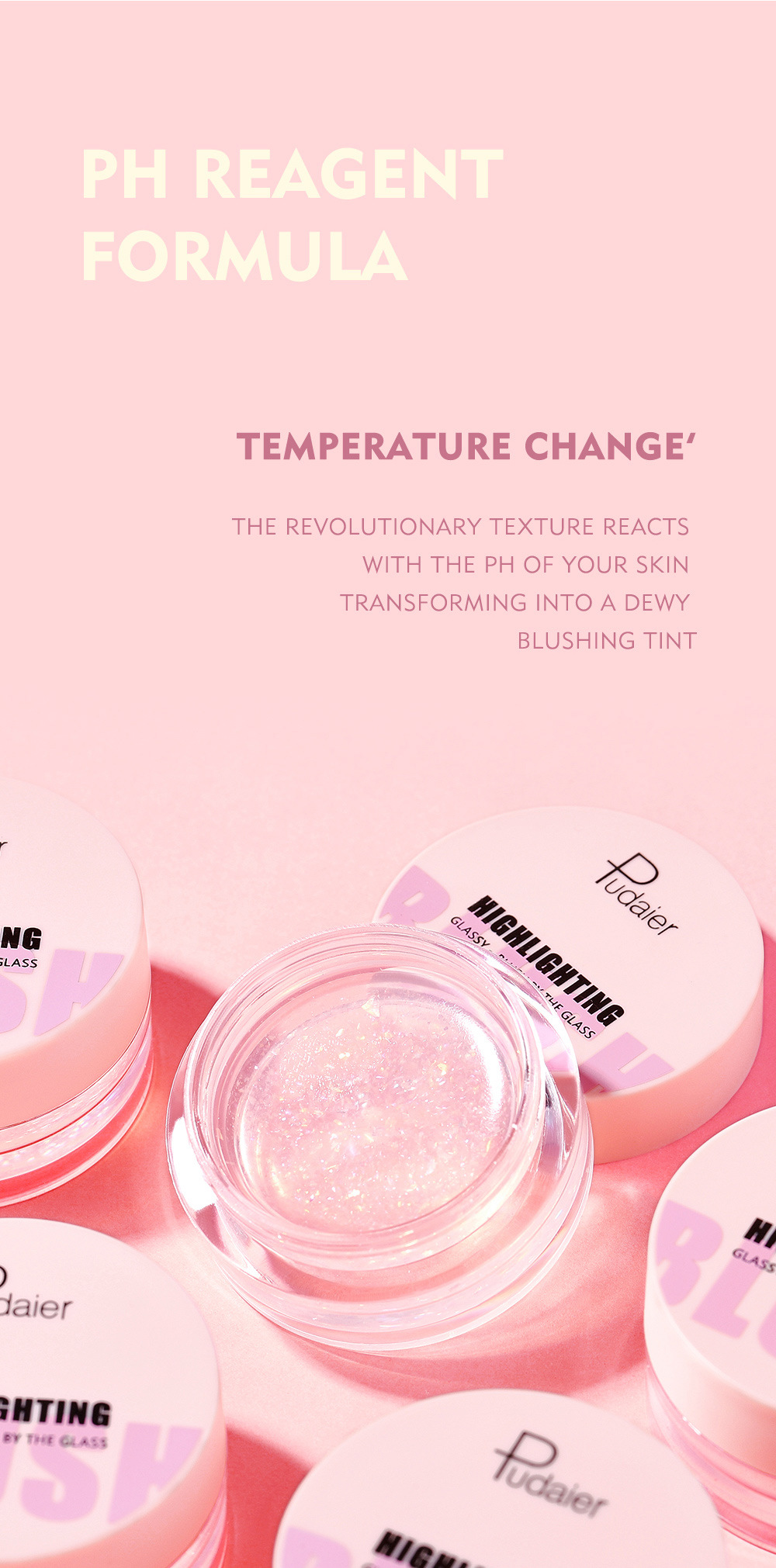 Pudaier warm powder blusher transparent color changing gel high gloss powder blusher cream natural nude makeup rouge powder blusher