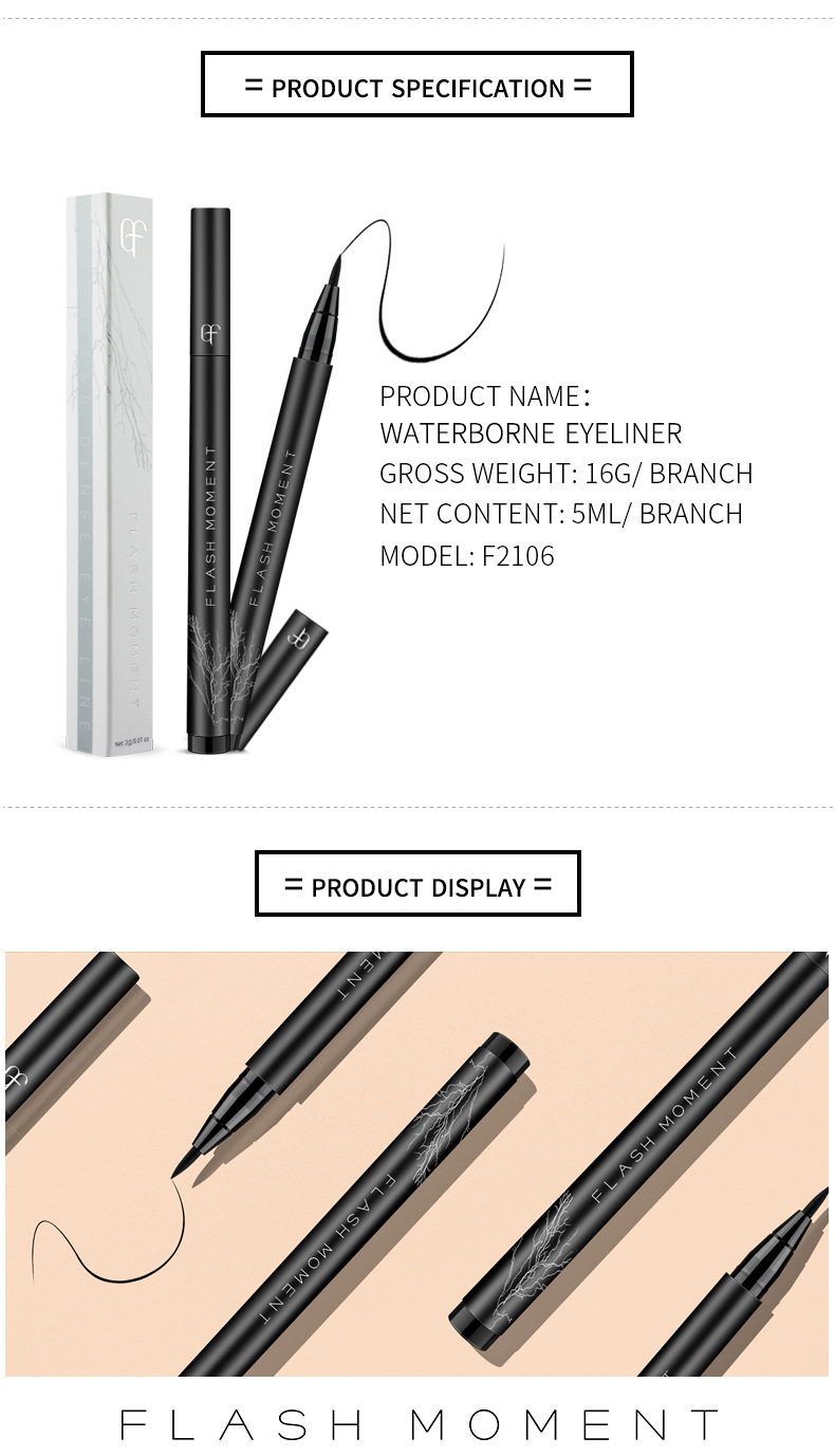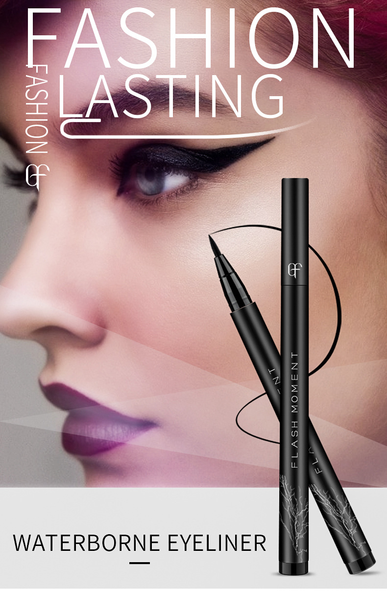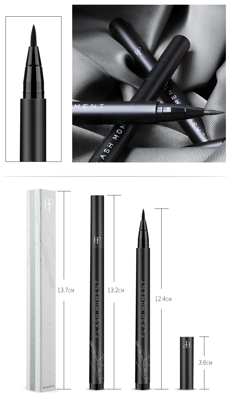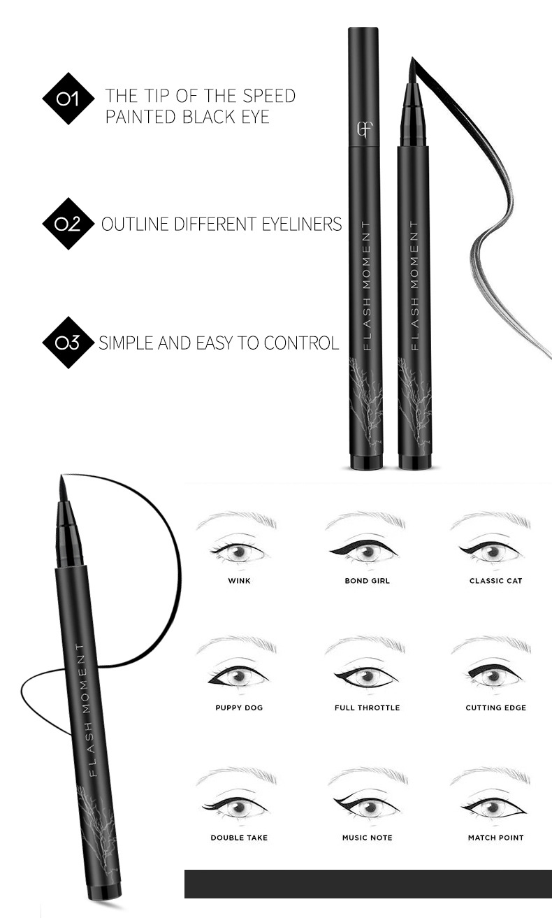 Flashmoment cotton head thick black eyeliner pen smooth cool black eyeliner liquid pen waterproof non smudge