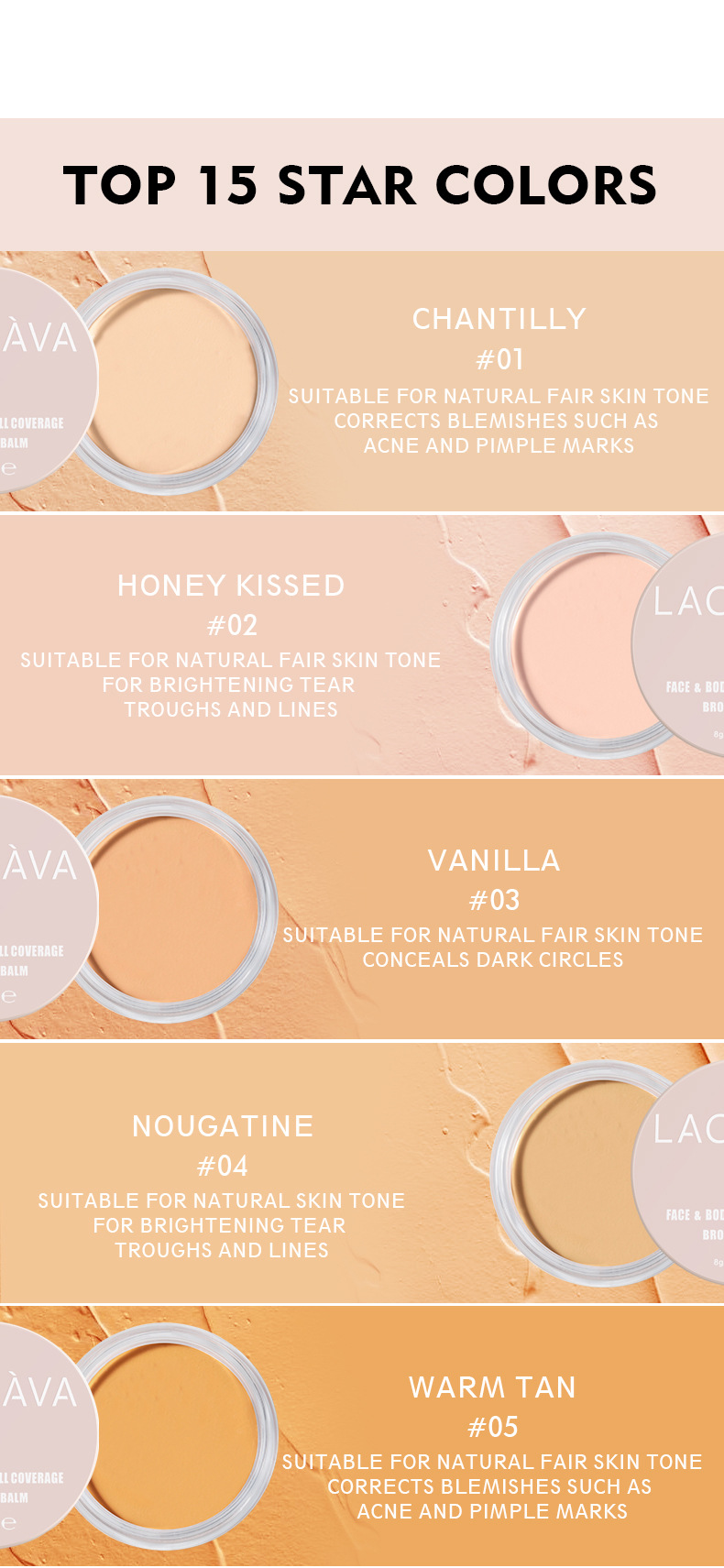LACHAVA concealer Concealer Black Eye Circle Lasting Non sticking Powder concealer 15 Color concealer foundation make-up