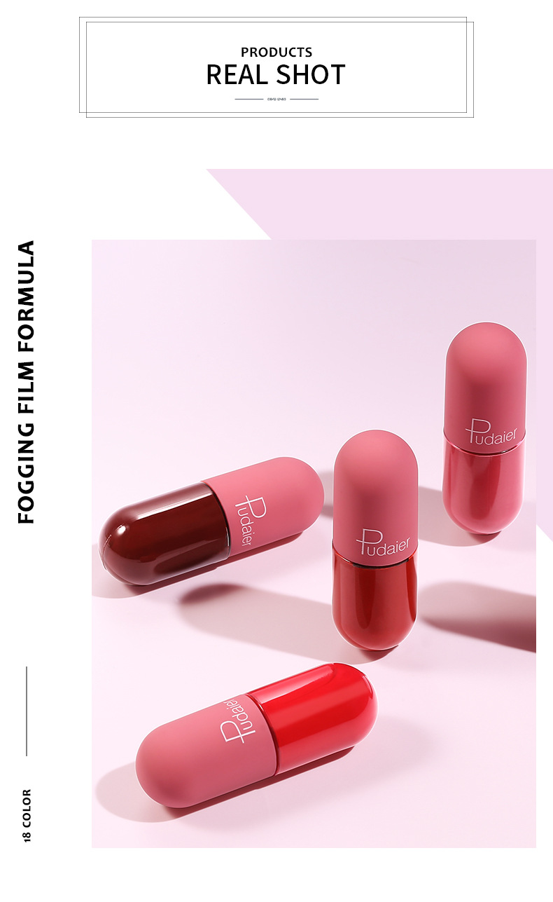 Pudaier 18 Color Mini Capsule Lip Glaze Velvet Mist Display Color Non Staying Cup Smooth Matte Popular