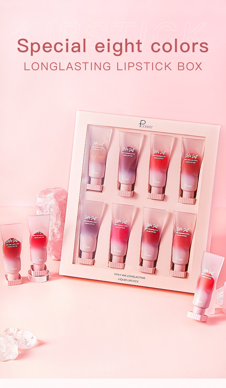 Makeup Pudaier 8 Pack Pearlescent Lip Color Mirror Water Glaze Lip Glaze Liquid Lipstick Paint Gloss Lip Honey