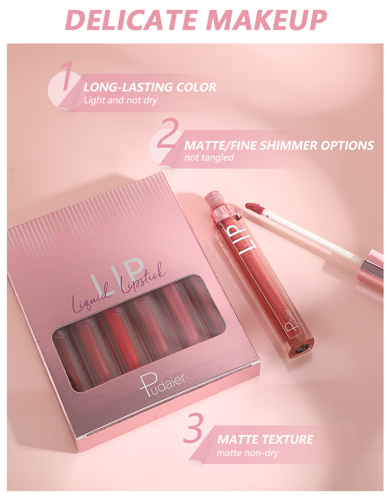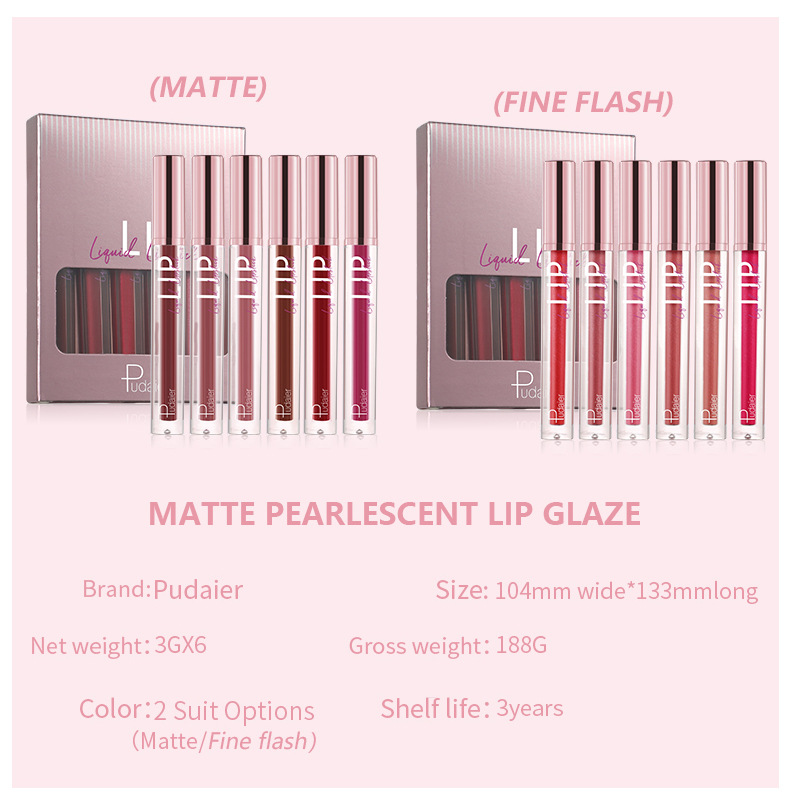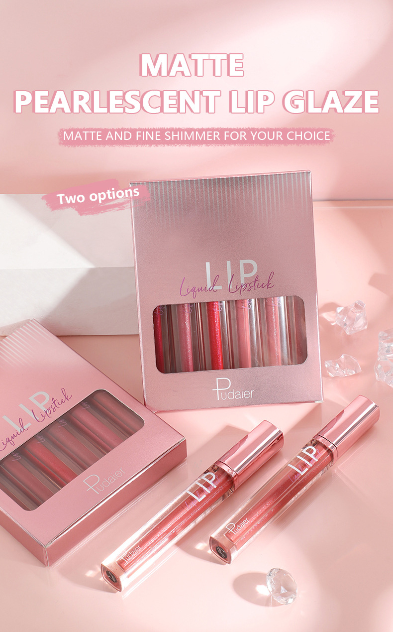 Matte Pearlescent Lip Glaze Mirror Moisturizing Lip Color Hot Selling 6 Color Lip Glaze Lipstick Set in Europe and America