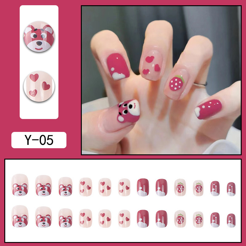 Mesh red false nail patch wearing nail finished nail piece detachable powder blusher nail girl cat eye gradual change nail enhancement patch