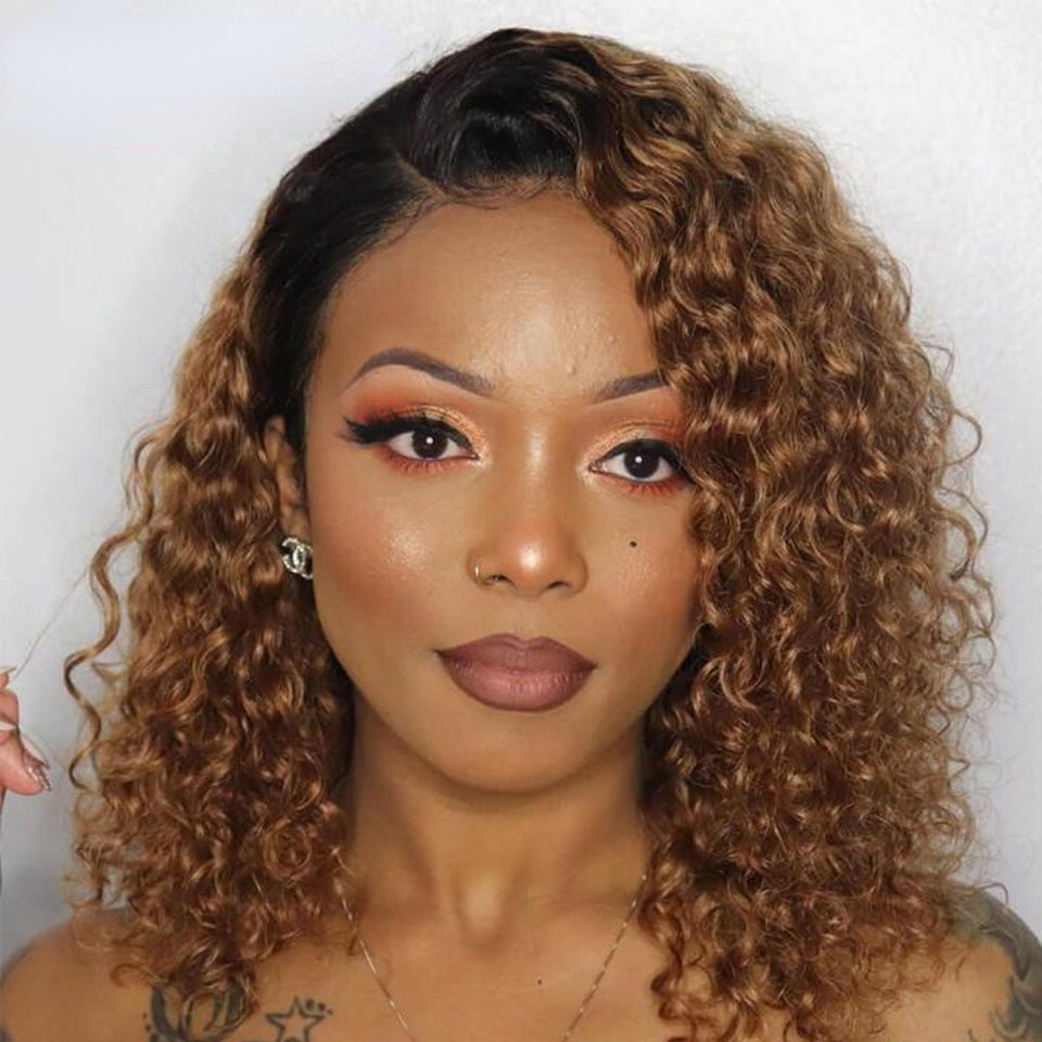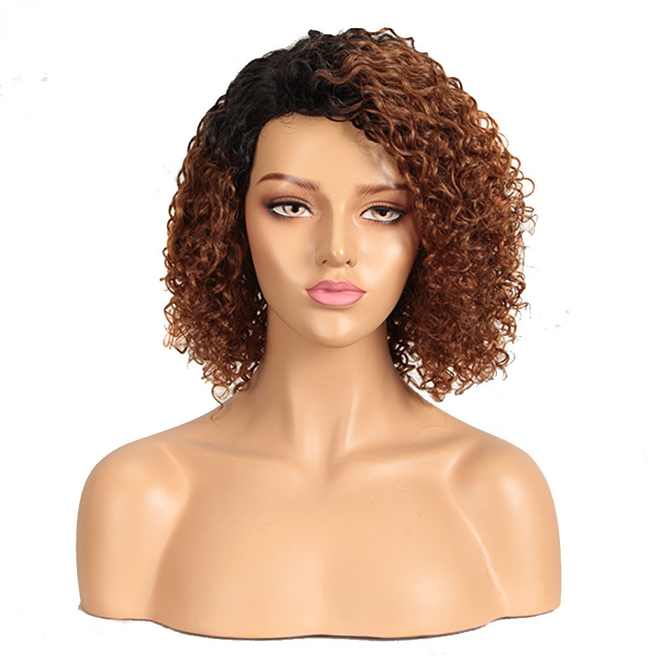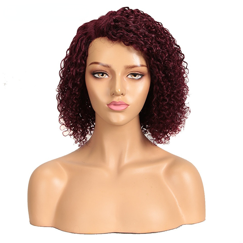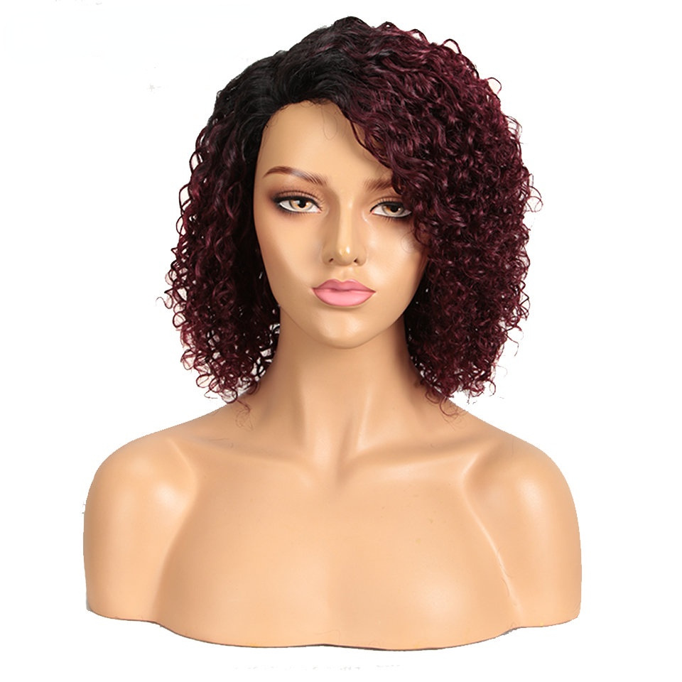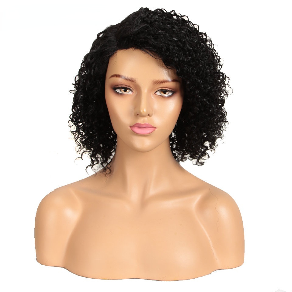 European and American wigs small curls black wigs fluffy exploding head bias forehead lace full hood human hair