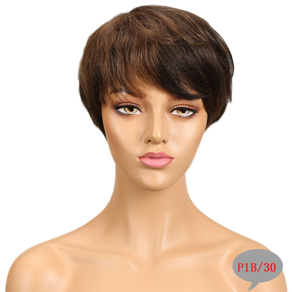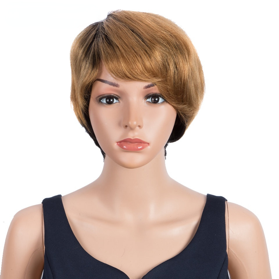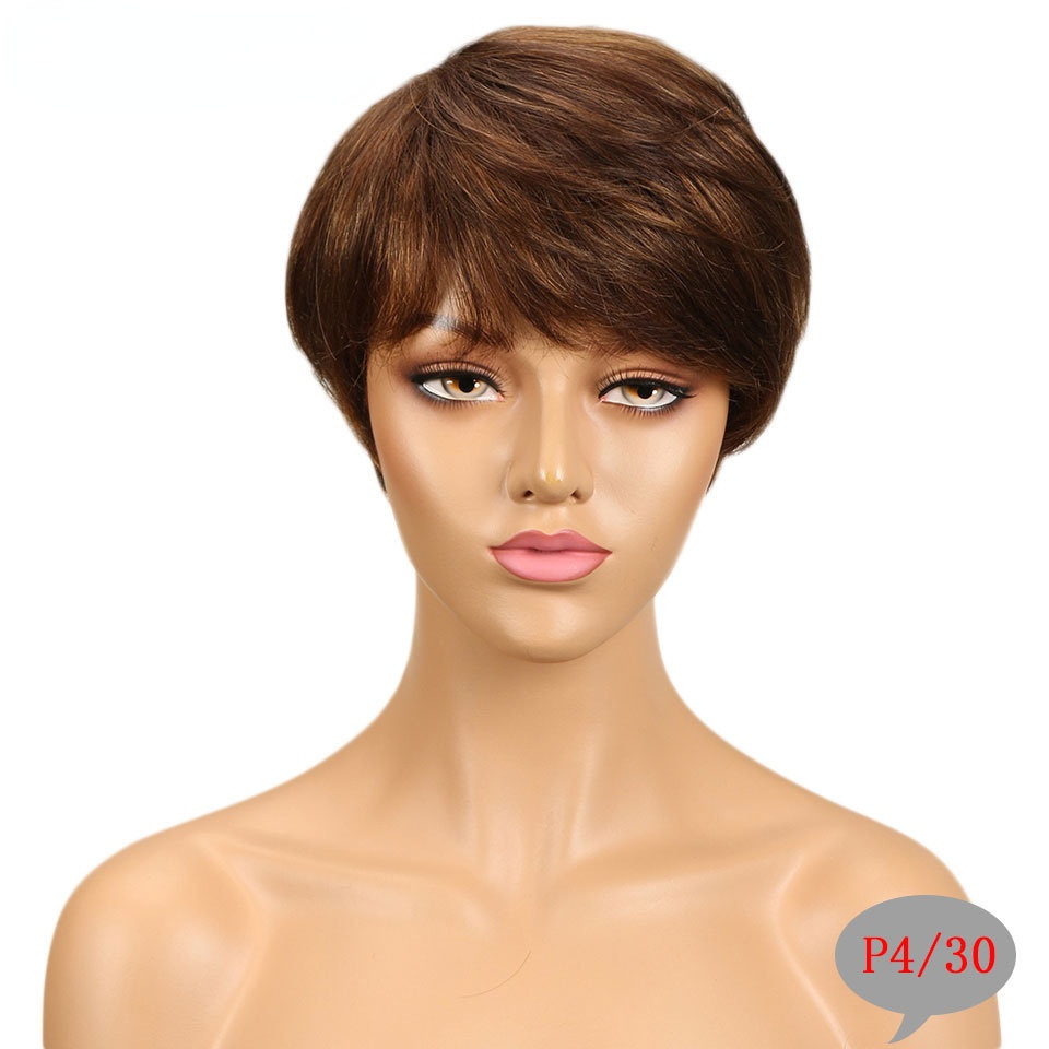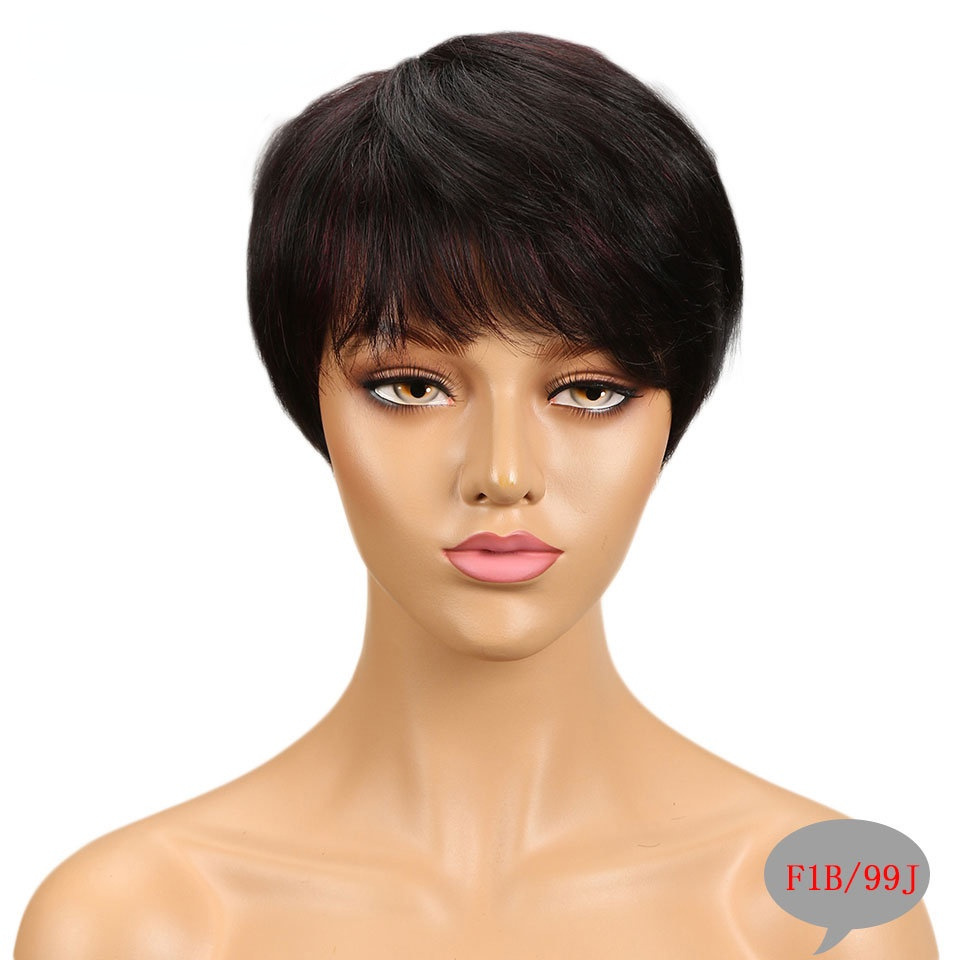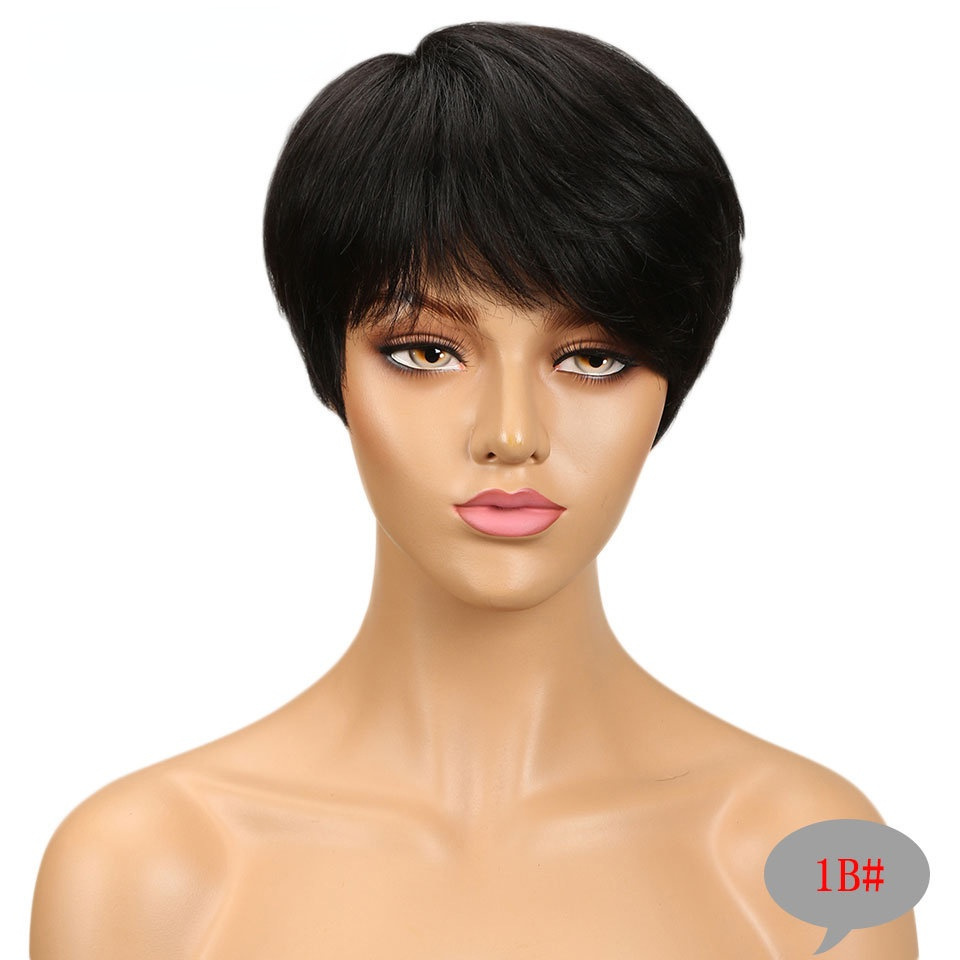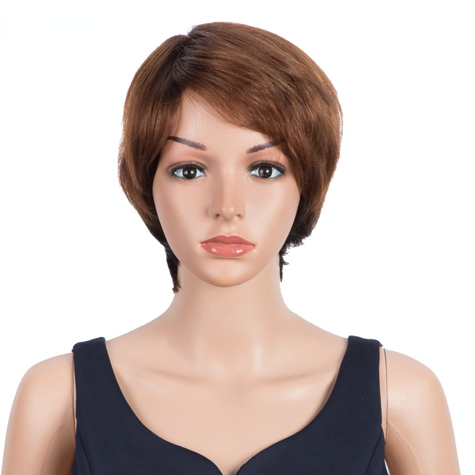 human hair european american wig full hood real hair short straight hair 8 inch hood mechanism wig