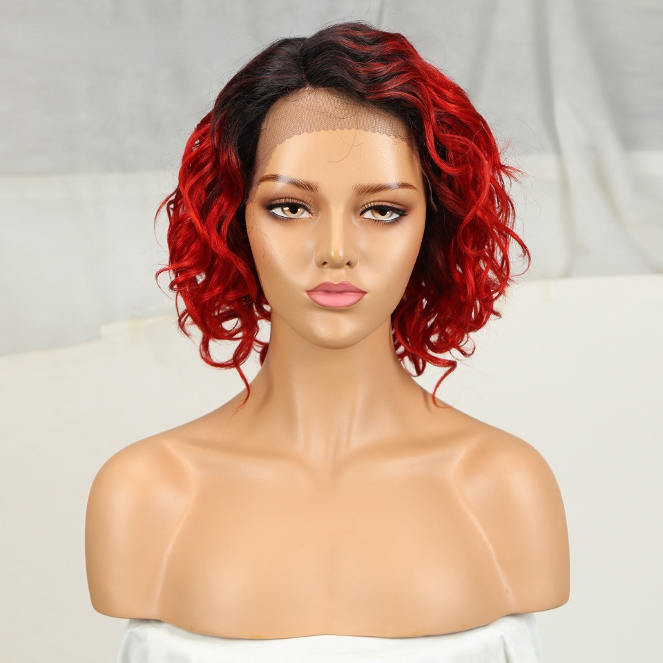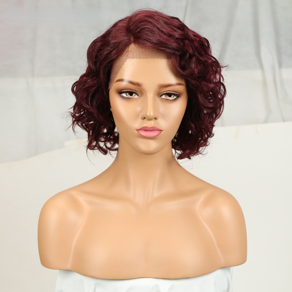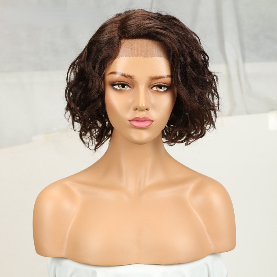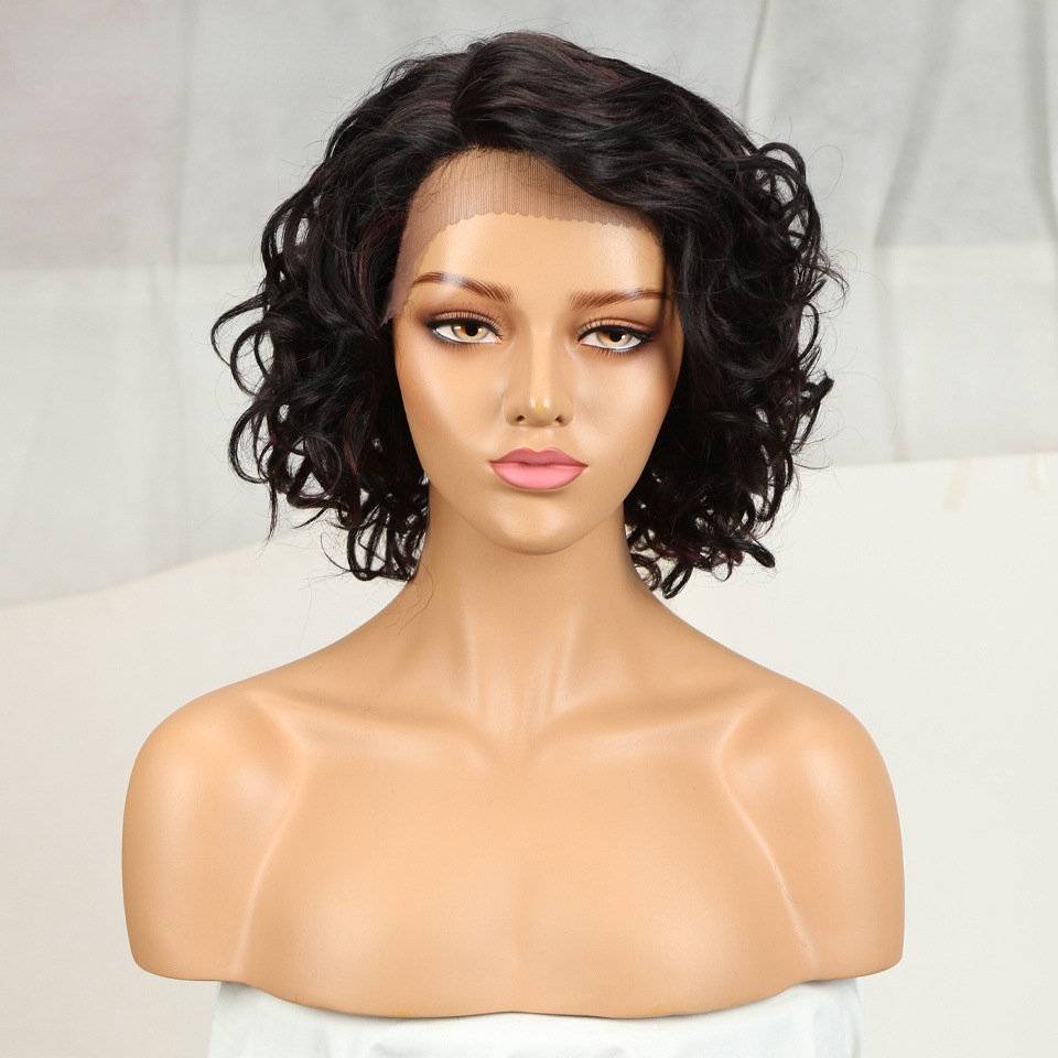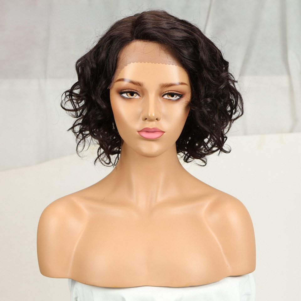 European and American Wigs Big Curly Black Wigs Fluffy Exploding Head 12 Inch Offset Front Lace Hood Human hair
