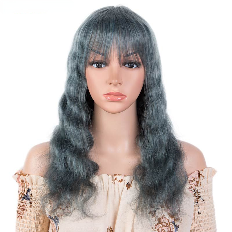 New Product Wig Female Smoke Gray Blue 12-26 Inch Long Curly Hair Cute Human Hair Full Head Covering
