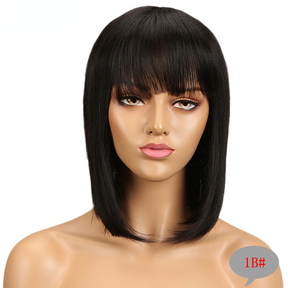 Wig Head Cover Medium Length BOBO Real Hair 10 Inch Bob Wig Head Cover Human Hair
